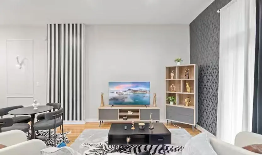 Ausgestattet mit WLAN und einem Fernsehen mit mehreren Kanälen, bietet die 93 m^2 große Ferienwohnung 2 Bd 2 Ba Bucktown Safari Flat Gästen ein Bügeleisen/Bügelbrett und eine Klimaanlage für zusätzlichen Komfort. In diesem Apartment steht den Gästen ein Badezimmer mit einem Haartrockner und Handtüchern zur Verfügung.